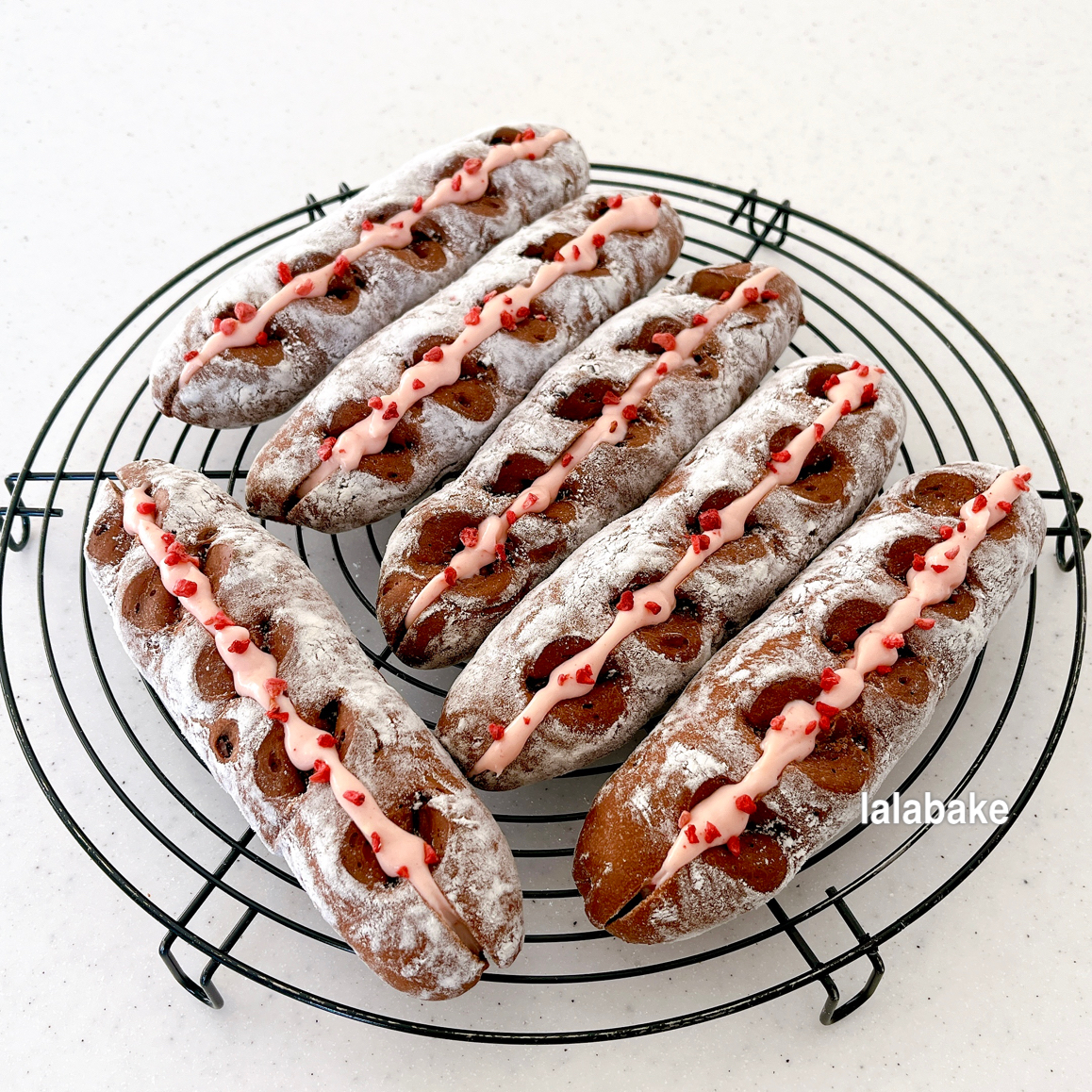 ココア入りのもっちりとしたハードな生地に、ラズベリーチーズクリームをはさんで仕上げます。バレンタインのプレゼントにもぴったりです。